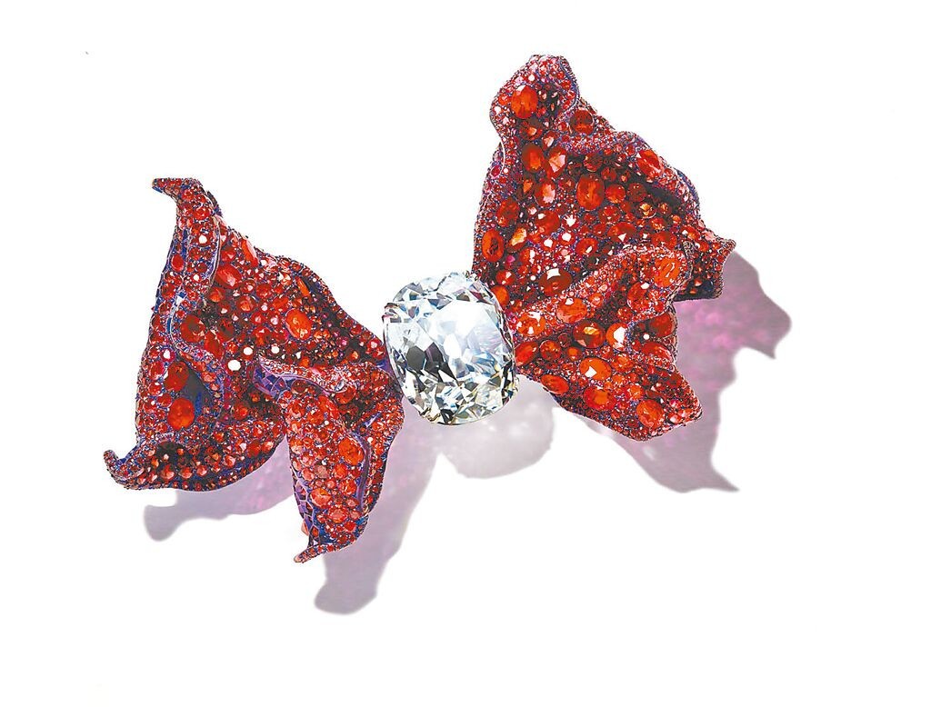 大師系列〈紅色緞帶蝴蝶結胸針〉,耗時10年完成。(CINDY CHAO提供)