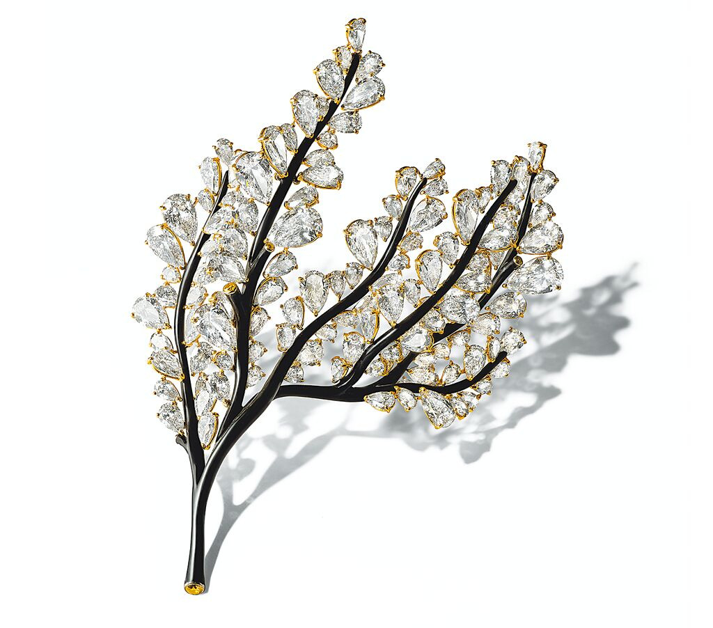 四季系列〈白鑽樹枝胸針〉,樹枝採用黑色陶瓷漆。(CINDY CHAO提供)