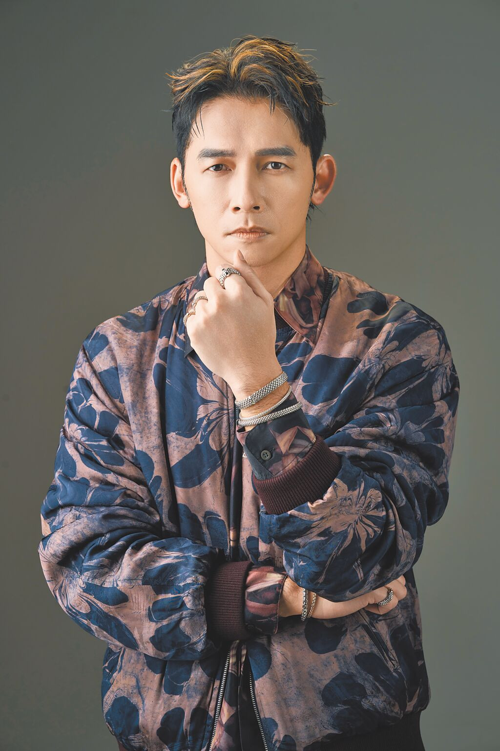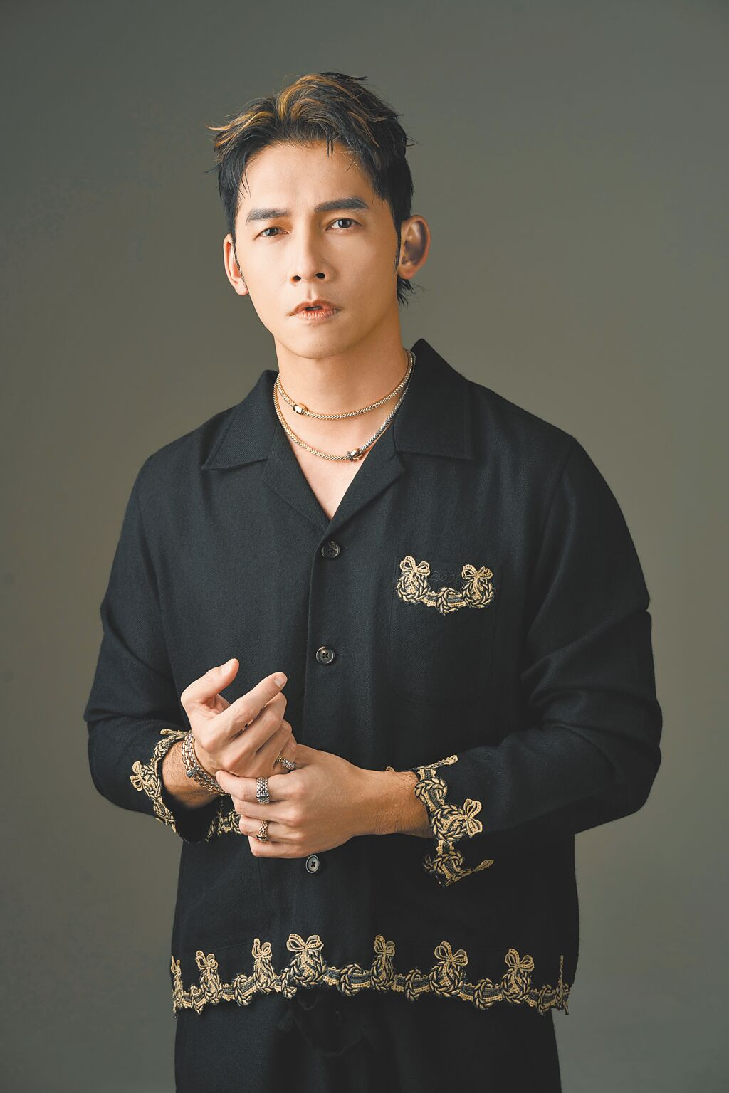 温昇豪疊戴義大利FOPE珠寶,帥氣迷人。(攝影/JOJ PHOTO‧專題企畫/中時時尚‧服裝提供/Dries Van Noten)