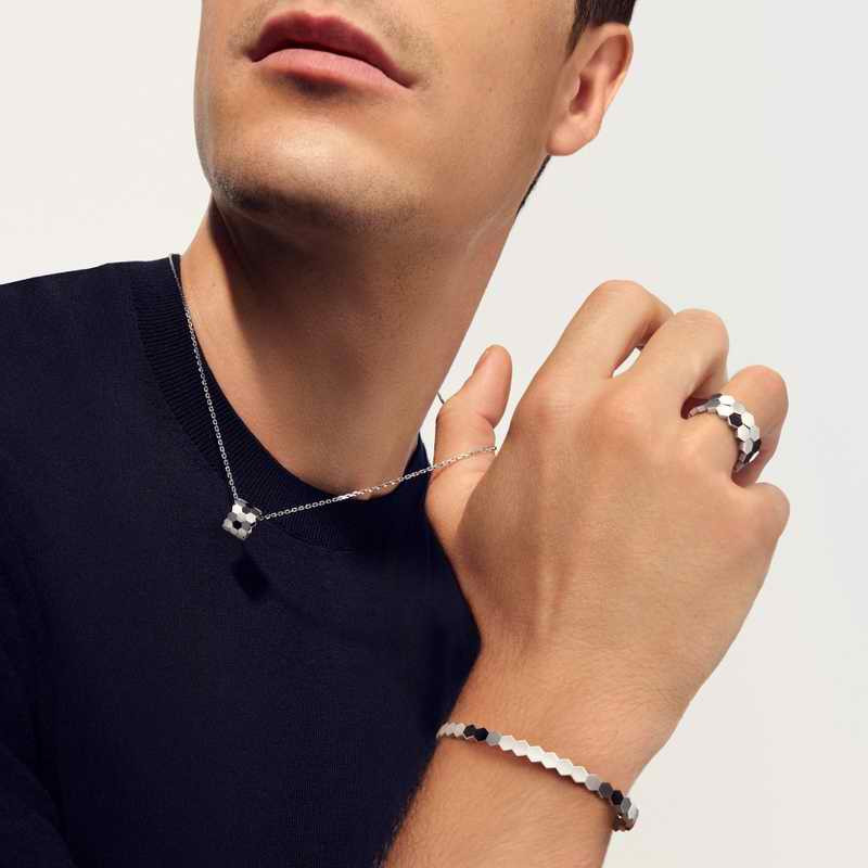 近年來,珠寶不再僅限於女性的專屬配件,越來越多男性也開始透過珠寶點綴個人風格,展現自我品味與態度。順應此一趨勢,各大品牌紛紛推出兼具美感與個性的中性設計珠寶,打破性別界線。Bee de Chaumet 系列富六角圖騰與現代感的設計,不論男女皆可自在佩戴,是詮釋當代風格與個性表達的理想之選。