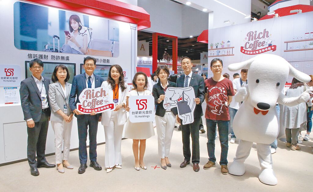 「第二屆高齡健康產業博覽會」8日登場,台新新光金控今年首度參與高齡健康產業博覽會,以「Rich Coffee台新新光智富咖啡館」為主題,打造一個融合金融服務、生活體驗與數位互動情境展區,台新銀行個人金融事業總處執行長包國儀(左四)、台新銀行總經理林淑真(左五)等到場替展區揭幕。(趙雙傑攝)