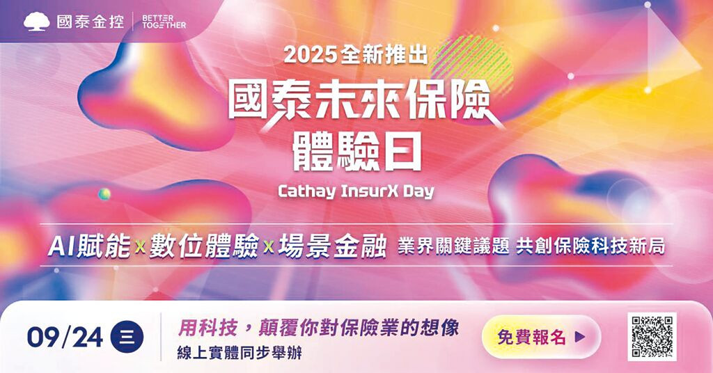 國泰金控自2020年起舉辦「國泰金控技術年會」,以金融科技轉型及創新技術為主題,累計高達1.5萬人次參與,成金融業最具指標性金融科技盛會;為深化金融科技領域的產官學交流,今年創新推出「國泰技術雙主軸」系列活動,第六屆「國泰金控技術年會」將於10月20日登場,9月24日率先舉行全台金融保險業首場、以保險科技為核心的「國泰未來保險體驗日(Cathay InsurX Day)」,集結國際級技術專家與跨產業領袖,從前瞻技術到金融保險場景落地,共同擘劃保險科技新局。
