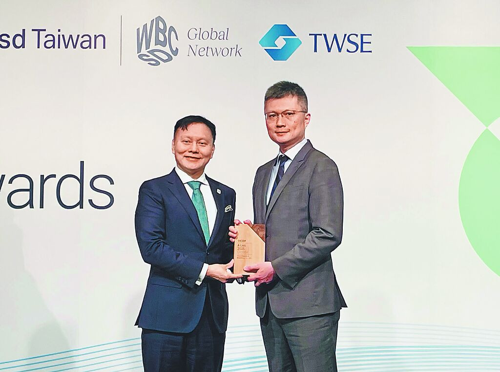 東元獲CDP碳揭露專案最高A級肯定,由ESG推動辦公室施昂廷處長(右)代表受獎,頒獎人為CDP亞太區市場總監Dennis Wan頒發(左)。(東元電機提供/柳名耕傳真)
