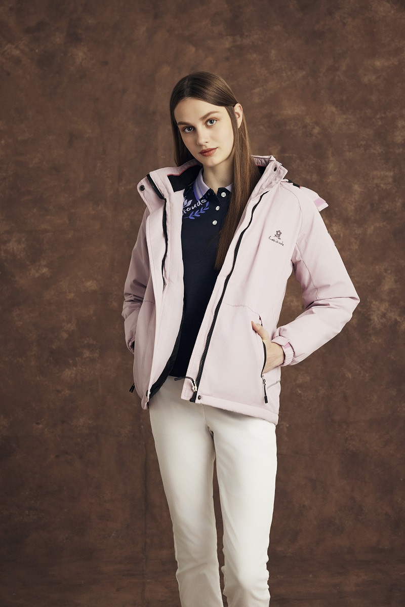色彩選用以湖水藍、藏青、奶油白與深墨黑交織,呼應都市與自然的靜謐節奏。設計細節如防風面料、拉鍊口袋與可拆式連帽,讓穿著者從高球場到日常通勤皆能自在切換。系列主打大圖騰LOGO單品,為整體造型注入復古與摩登兼容的視覺焦點。
