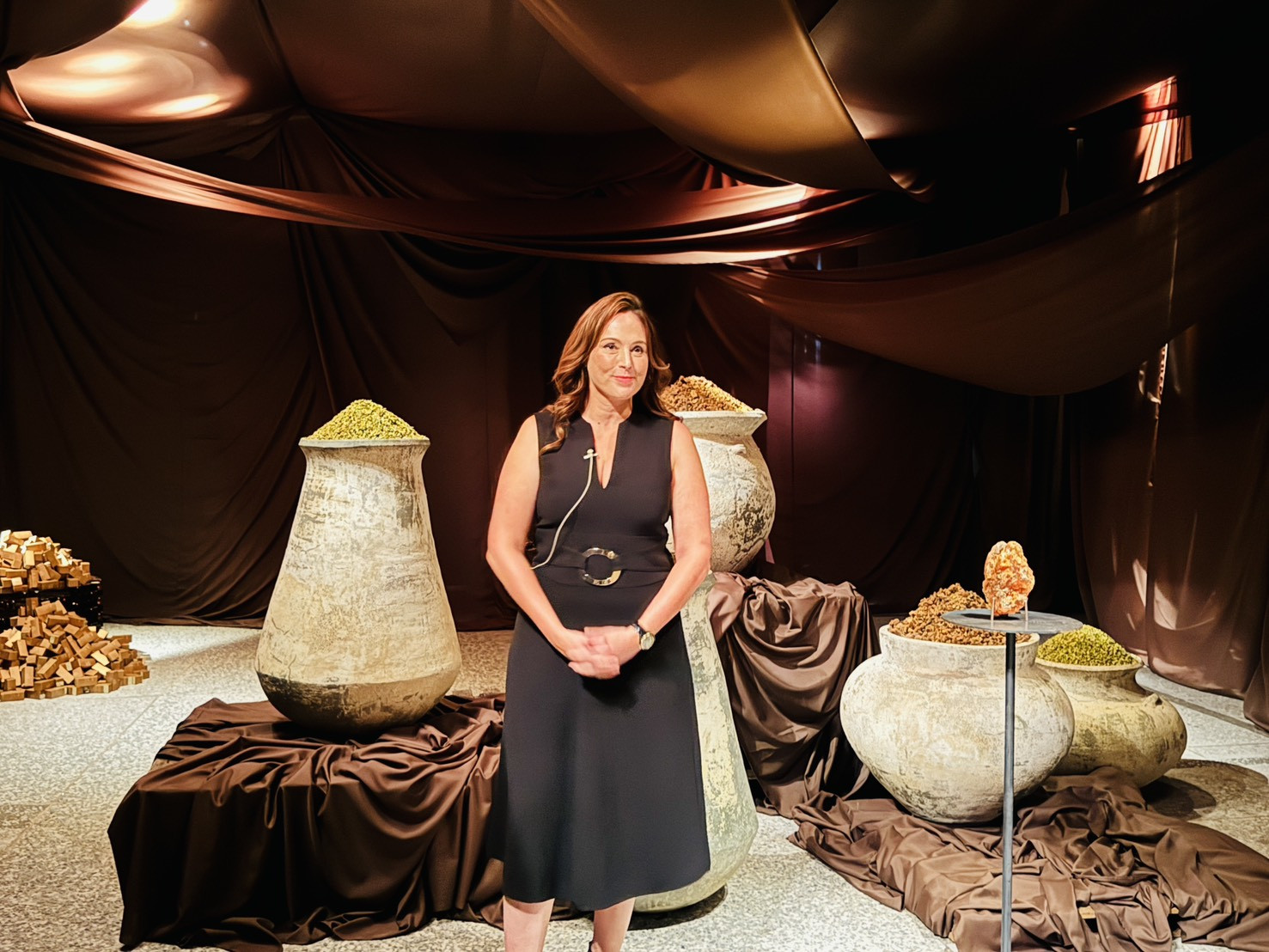 Céline Barel 分享創作歷程時指出,她將「蒼穹之上」視為一場詩意對話。她回憶,當初走進墨爾本 Aesop 柯林街店,抬頭望見由回收玻璃瓶拼砌而成的天花板時,感受到彷彿群星閃爍的奇景,這正成為她設計香調的重要觸發點。