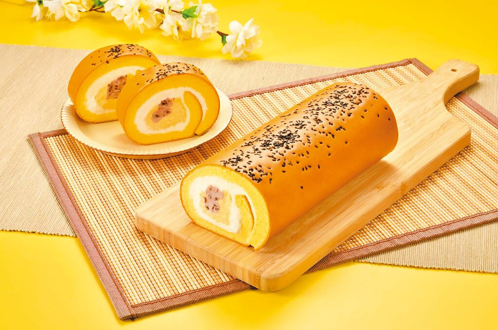 「蛋黃酥風味生乳捲」將蛋黃酥風味在生乳捲實現,加入畫龍點睛的黑芝麻增添香氣,售價525元。(亞尼克提供)