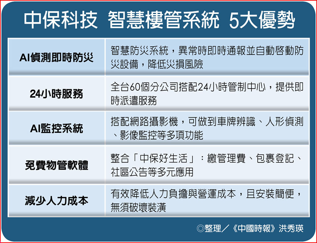 「中保無限+」智慧防災系統亦是中保科技「智慧樓管系統」的其中一環,其串聯社區管理、影像監控與智慧防災,讓防災服務從家庭延伸至整個社區,構築更全面的安全防護網。