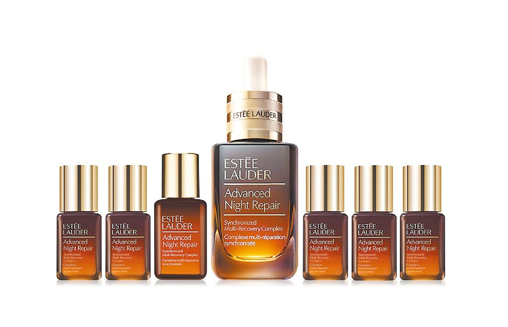 遠百桃園Estee Lauder雅詩蘭黛全方位小棕修護組,內含特潤超導全方位修護露50ml+15ml+7ml五瓶,價值8900元、特價4450元,限量50組。(遠百提供)