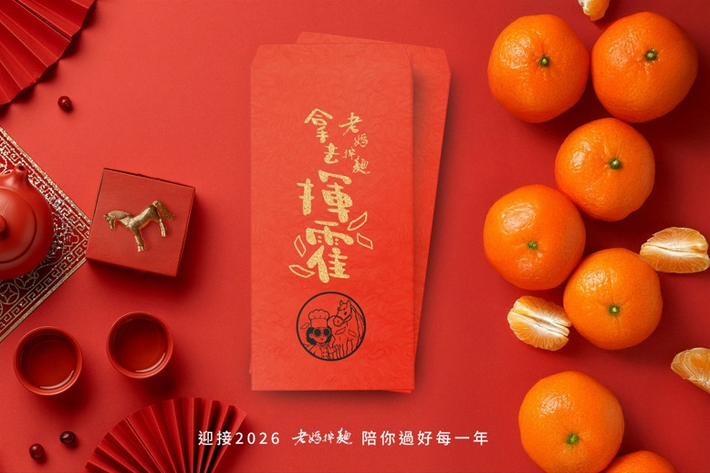 凡於老媽拌麵官網訂購產品,即獲得限定紅包袋,讓消費者「馬」上好運!